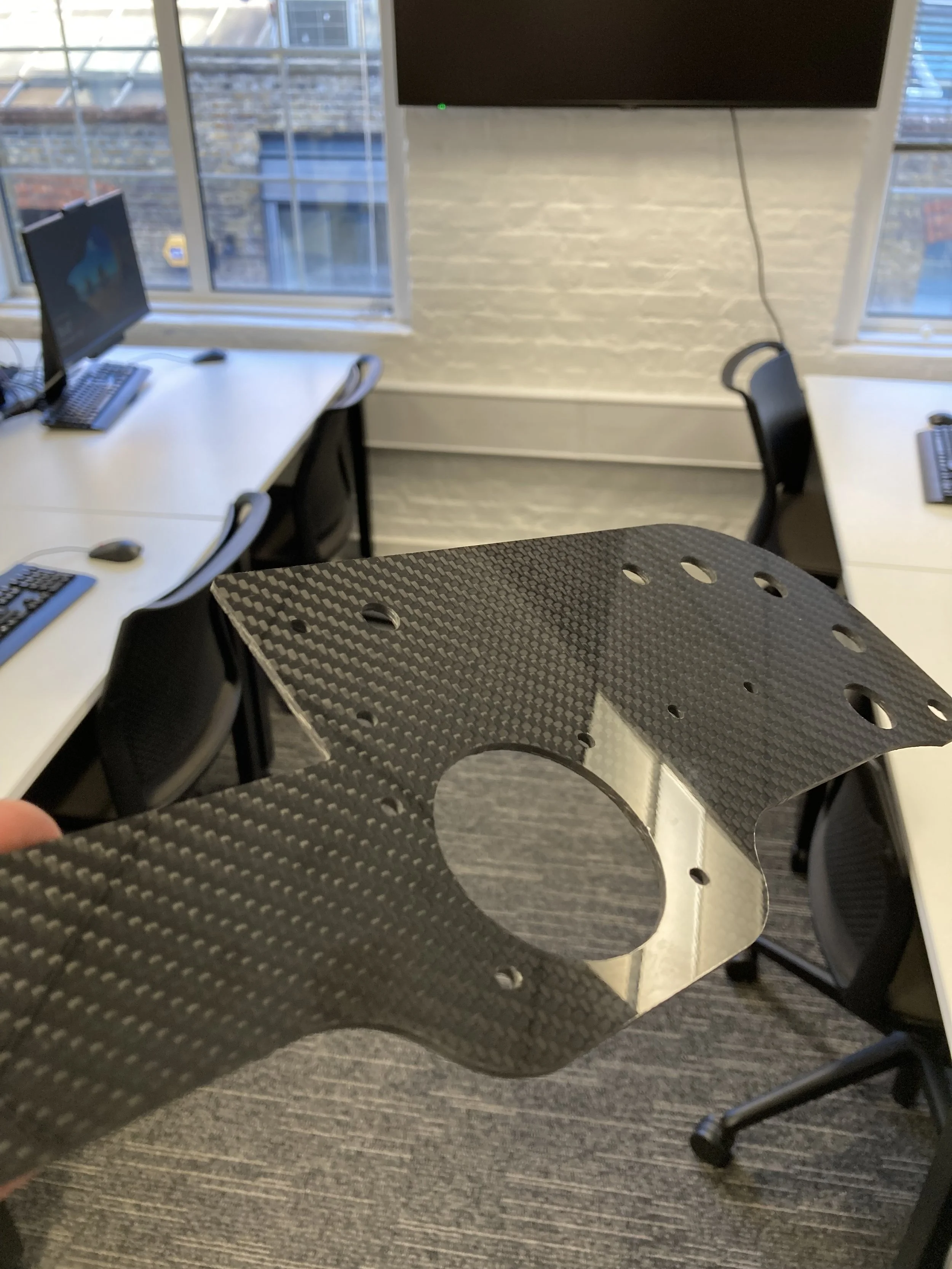 I was allowed to see the dashboard being manufactured on a 3 axis CNC router using the intended 3mm carbon fibre sheet.
